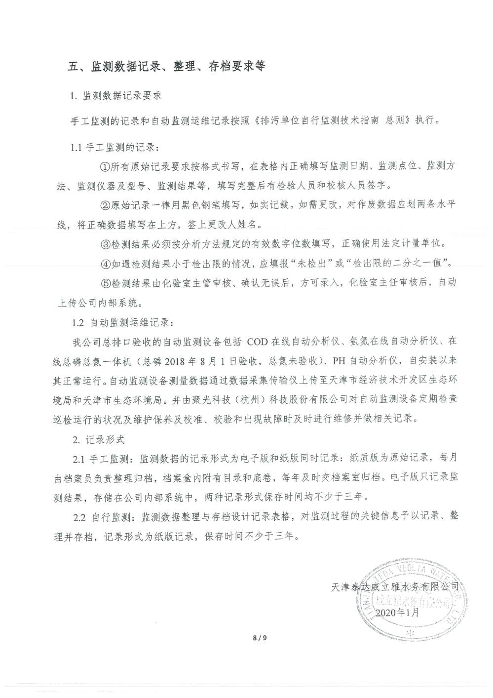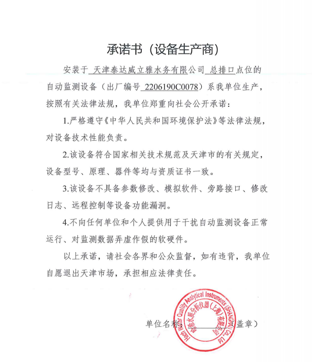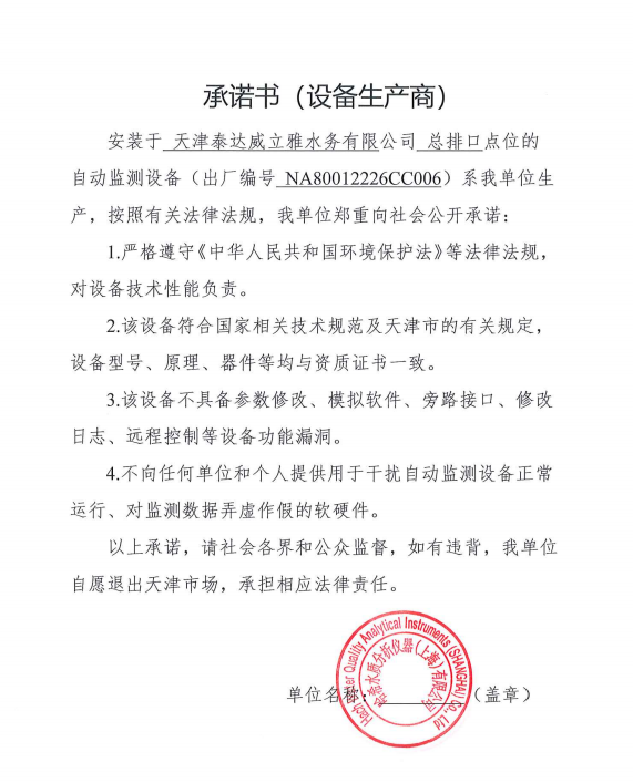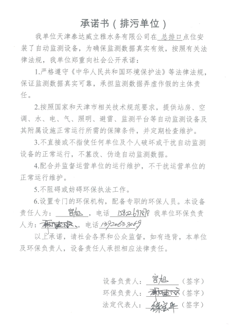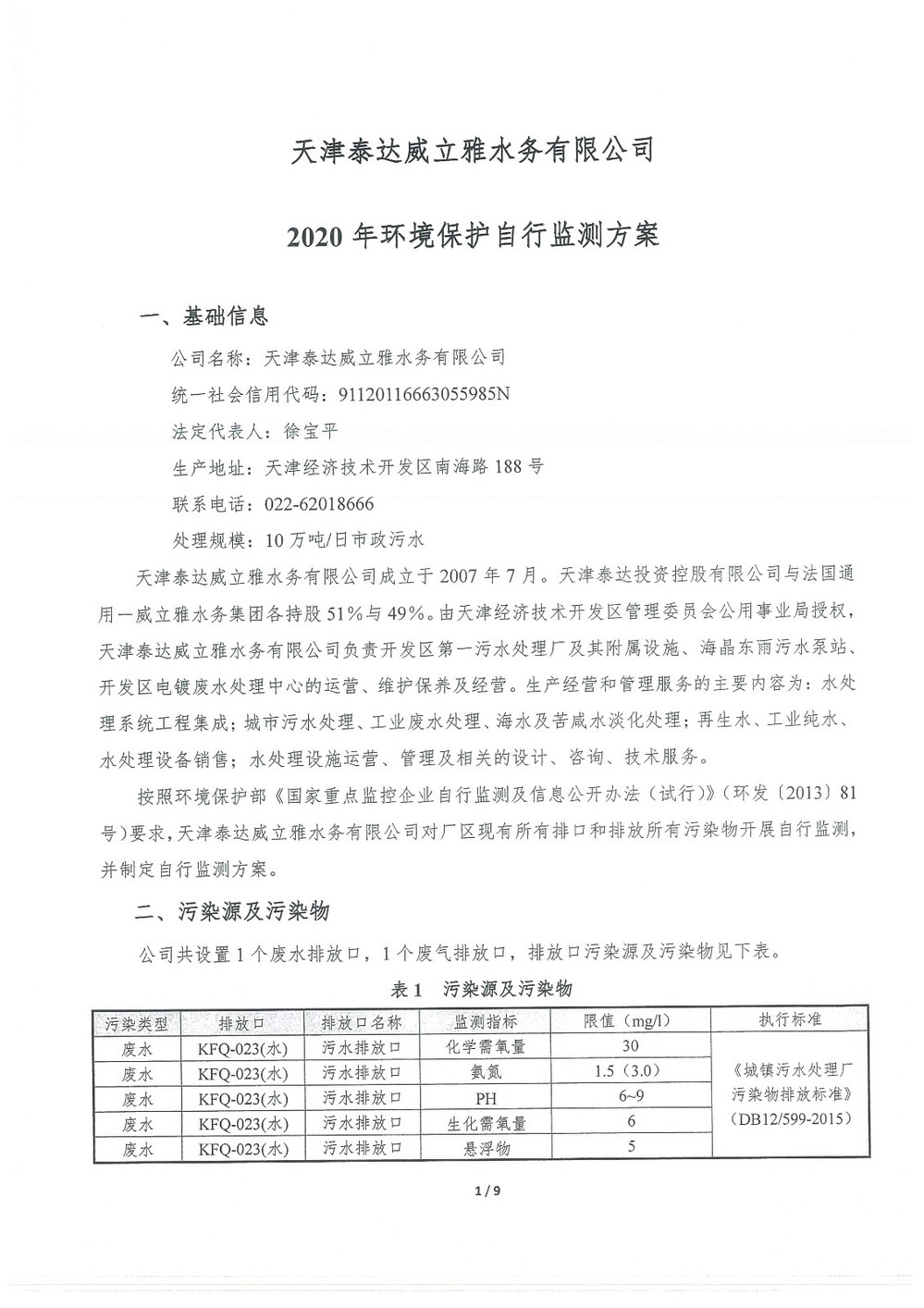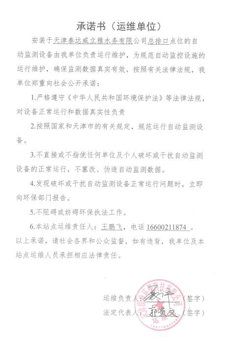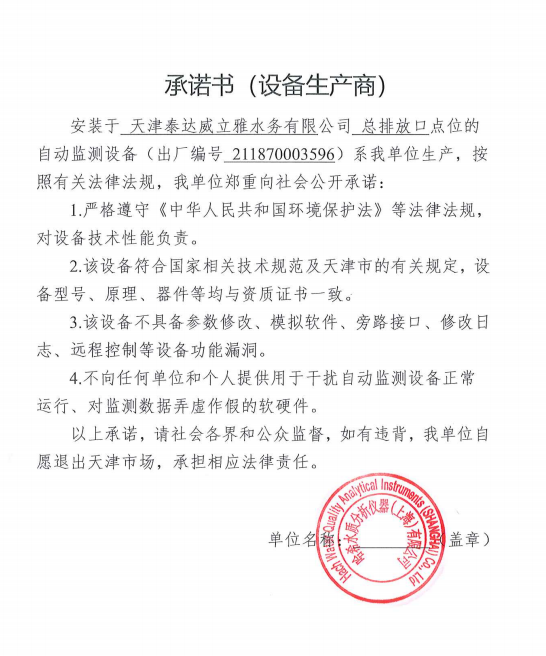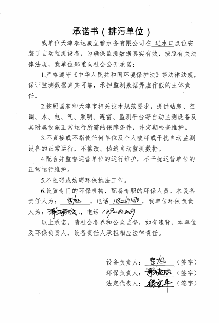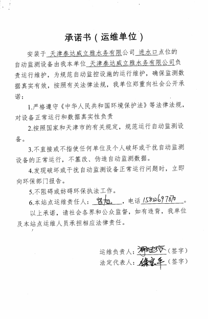 ? 公司出水指標(biāo)數(shù)據(jù)經(jīng)現(xiàn)場(chǎng)數(shù)據(jù)采集儀采集后直接上傳至天津開(kāi)發(fā)區(qū)環(huán)保局及天津市環(huán)境監(jiān)測(cè)中心。天津市環(huán)境監(jiān)測(cè)中心直接將接收自公司的上傳數(shù)據(jù)發(fā)送至國(guó)家環(huán)保部。實(shí)現(xiàn)了對(duì)我公司出水指標(biāo)數(shù)據(jù)的實(shí)時(shí)在線監(jiān)控和監(jiān)督管理。 自2014年,依《國(guó)家重點(diǎn)監(jiān)控企業(yè)污染源監(jiān)督性監(jiān)測(cè)及信息公開(kāi)辦法(試行)》,主要污染物排放情況經(jīng)天津市重點(diǎn)企業(yè)自行檢測(cè)數(shù)據(jù)發(fā)布系統(tǒng)對(duì)外公布,主動(dòng)接受社會(huì)公眾監(jiān)督。 信息發(fā)布平臺(tái) 2026年第1季度環(huán)境信息公開(kāi):天津泰達(dá)威立雅水務(wù)有限公司 公司名稱:天津泰達(dá)威立雅水務(wù)有限公司 統(tǒng)一社會(huì)信用代碼:91120116663055985N 法定代表人:徐寶平 生產(chǎn)地址:天津經(jīng)濟(jì)技術(shù)開(kāi)發(fā)區(qū)南海路188號(hào) 聯(lián)系電話:022-62018666 處理規(guī)模:10萬(wàn)m3/日市政污水 生產(chǎn)經(jīng)營(yíng)和管理服務(wù)的主要內(nèi)容: 水處理系統(tǒng)工程集成;城市污水處理、工業(yè)廢水處理、海水及苦咸水淡化處理;再生水、工業(yè)純水、水處理設(shè)備銷售;水處理設(shè)施運(yùn)營(yíng)、管理及相關(guān)的設(shè)計(jì)、咨詢、技術(shù)服務(wù)。 其他信息: 天津泰達(dá)威立雅水務(wù)有限公司成立于2007年7月。天津泰達(dá)投資控股有限公司與法國(guó)通用-威立雅水務(wù)集團(tuán)各持股51%與49%。由天津經(jīng)濟(jì)技術(shù)開(kāi)發(fā)區(qū)管理委員會(huì)公用事業(yè)局授權(quán),天津泰達(dá)威立雅水務(wù)有限公司負(fù)責(zé)開(kāi)發(fā)區(qū)第一污水處理廠及其附屬設(shè)施、海晶東雨污水泵站、開(kāi)發(fā)區(qū)電鍍廢水處理中心的運(yùn)營(yíng)、維護(hù)保養(yǎng)及經(jīng)營(yíng)。 項(xiàng)目(出水) 平均值(mg/L) A標(biāo)準(zhǔn)(DB12/599-2015) (mg/L) 化驗(yàn)次數(shù)(次) 合格率(%) 我公司排放口數(shù)量為一個(gè),位于廠區(qū)東南側(cè)。處理后出水排入市政專用排污管道,經(jīng)北排泵站排入渤海灣。2026年1-3月我公司COD、氨氮、總氮、總磷排放總量如下: 159.77 天津泰達(dá)威立雅水務(wù)有限公司為原天津經(jīng)濟(jì)技術(shù)開(kāi)發(fā)區(qū)污水處理廠,是天津?yàn)I海新區(qū)第一座污水處理廠,位于開(kāi)發(fā)區(qū)南海路與第十二大街交口處,污水處理項(xiàng)目投資總額3.5534億元人民幣,占地8.1公頃,設(shè)計(jì)能力為日處理污水10萬(wàn)m3,其中市政污水的比例高于60%。污水處理工藝目前采用“預(yù)處理+SBR+反硝化濾池+臭氧催化高級(jí)氧化+紫外消毒”。脫水機(jī)房、進(jìn)水泵房、預(yù)處理單元和儲(chǔ)泥池的臭氣經(jīng)過(guò)收集管道收集進(jìn)入生物過(guò)濾塔除臭處理。剩余污泥經(jīng)脫水機(jī)脫水處理,泥餅外運(yùn)處理。工藝系統(tǒng)由在線儀器儀表輸送到中控室實(shí)現(xiàn)自動(dòng)控制。 出水水質(zhì)達(dá)到天津市《城鎮(zhèn)污水處理廠污染物排放標(biāo)準(zhǔn)》(DB12/599-2015)A排放標(biāo)準(zhǔn)。廠界噪聲均滿足《工業(yè)企業(yè)廠界噪聲標(biāo)準(zhǔn)》GB12348-2008(3類)晝、夜標(biāo)準(zhǔn)值。廠界無(wú)組織排放廢氣中臭氣濃度、氨、硫化氫濃度均符合《惡臭污染物排放標(biāo)準(zhǔn)》(GB12/059-2018)限值要求。 開(kāi)發(fā)區(qū)第一污水處理廠現(xiàn)狀主要的大氣影響來(lái)自預(yù)處理單元(格柵與沉砂池)和污泥區(qū)(污泥脫水機(jī)房)的惡臭氣體。污泥脫水機(jī)房、污泥料倉(cāng)、三合一泵房等設(shè)施產(chǎn)生的臭氣集中收集,儲(chǔ)泥池、預(yù)處理單元等采用加罩密閉設(shè)計(jì),臭氣集中收集至生物除臭裝置,除臭效率不低于80%,處理后由15米高排氣筒達(dá)標(biāo)排放。根據(jù)天津市環(huán)保局《關(guān)于天津開(kāi)發(fā)區(qū)第一污水處理廠改造工程環(huán)境影響報(bào)告書(shū)的批復(fù)》,開(kāi)發(fā)區(qū)第一污水處理廠的衛(wèi)生防護(hù)距離設(shè)為100m。 污水廠廢氣監(jiān)測(cè)結(jié)果表明,廠區(qū)周界監(jiān)測(cè)點(diǎn)位臭氣濃度均低于20(無(wú)量綱),符合《惡臭污染物排放標(biāo)準(zhǔn)(GB12/059-2018)的標(biāo)準(zhǔn)要求。 開(kāi)發(fā)區(qū)第一污水處理廠污水經(jīng)處理后達(dá)到天津市《城鎮(zhèn)污水處理廠污染物排放標(biāo)準(zhǔn)》(DB12/599-2015)A排放標(biāo)準(zhǔn)要求。污水處理廠工藝過(guò)程本身沒(méi)有生產(chǎn)性廢水排放,所排污水主要為生活污水和污泥處理水,這部分廢水一同返回本污水處理廠的進(jìn)水泵房,與市政污水一并處理。2026年1-3月出水達(dá)標(biāo)率為100%,無(wú)超標(biāo)情況。 開(kāi)發(fā)區(qū)第一污水處理廠主要的噪聲設(shè)備為鼓風(fēng)機(jī),鼓風(fēng)機(jī)位于鼓風(fēng)機(jī)房,并設(shè)置隔音減震措施,其噪聲影響甚微。 監(jiān)測(cè)結(jié)果:廠界噪聲共設(shè)置4個(gè)噪聲監(jiān)測(cè)點(diǎn),執(zhí)行《工業(yè)企業(yè)廠界環(huán)境噪聲排放標(biāo)準(zhǔn)》(GB12348-2008)3類標(biāo)準(zhǔn),根據(jù)監(jiān)