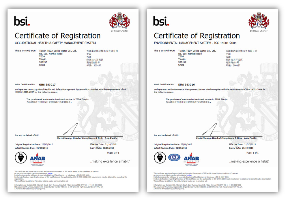 2012年公司獲得BSI公司頒發(fā)的ISO 14001OHSAS 18001體系認證證書,保持著ISO 14001OHSAS 18001體系的穩(wěn)定運行。